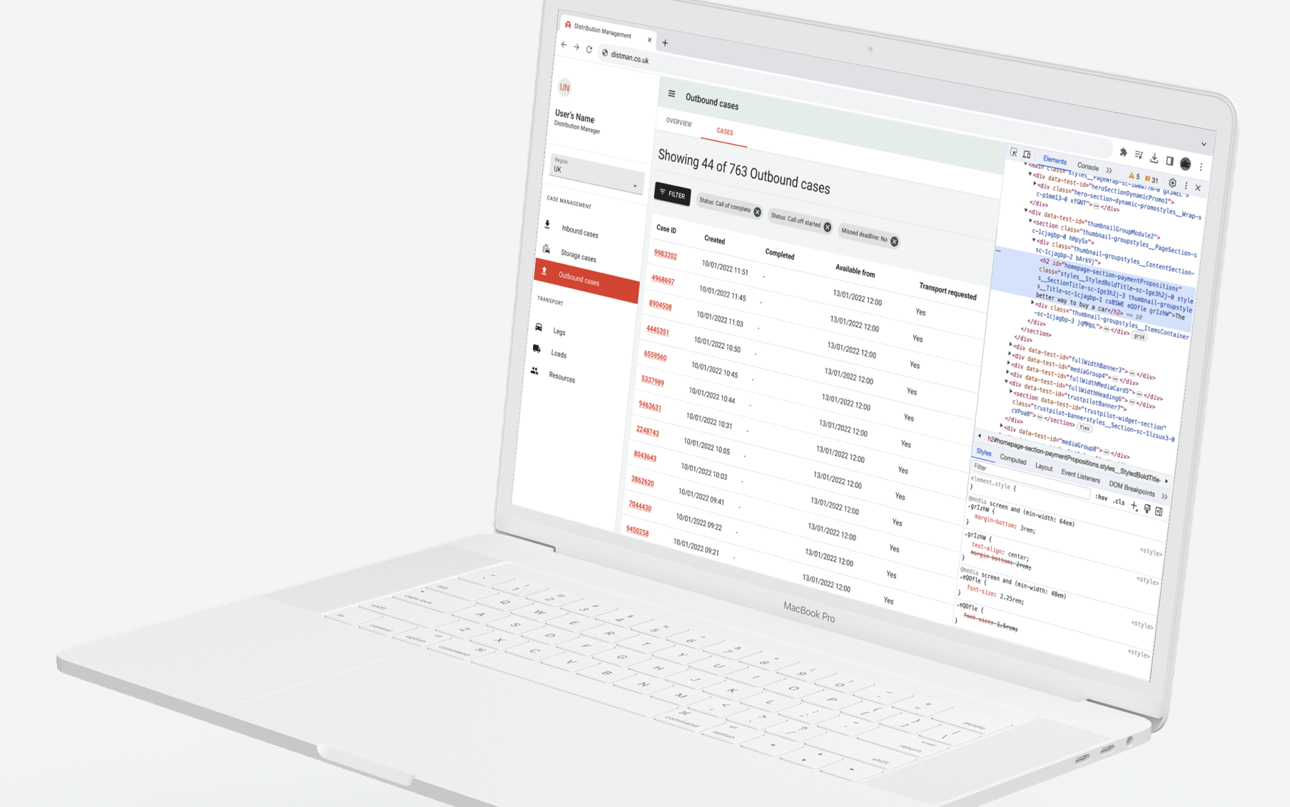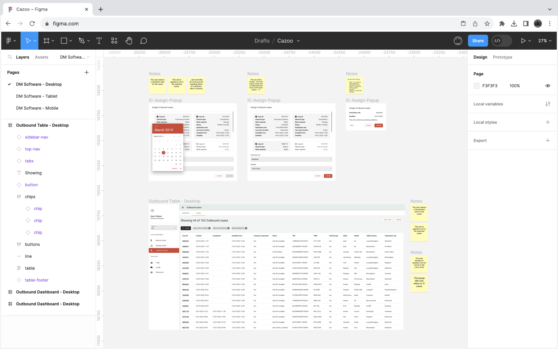 I designed a fully functional dashboard and data table UI in Figma - this ran off of Cazoo's Material UI-based design system - again, I tested the designs with logistics team users.